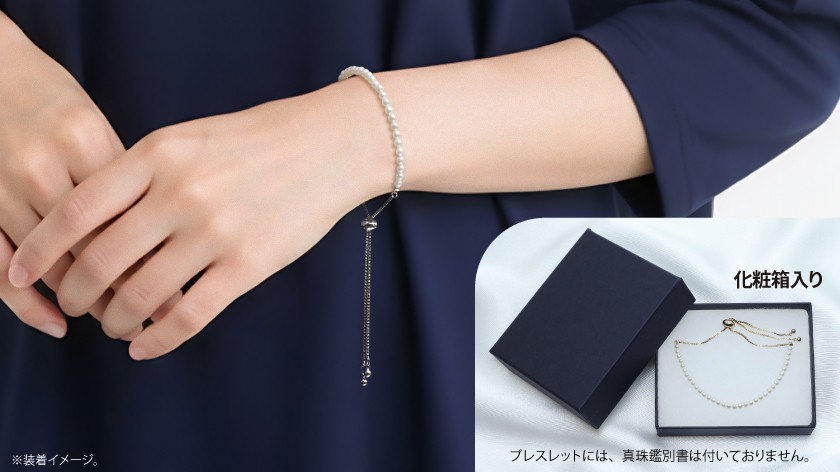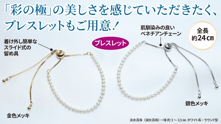 また、今回は、〈Premium湖水真珠「彩の極®」〉の美しさをお手元でも感じていただきたく、ブレスレットもご用意しました。ブレスレットは、ご自身の目で楽しんでいただけるジュエリーです。