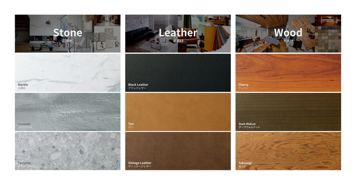 ◆伝統工芸品や自然素材などの質感を表現。全57種のデザイン展開