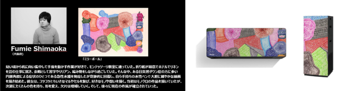 今回、「ART」では“異彩を、放て。”をミッションに、障害のイメージ変容と新たな文化の創出をめざすクリエイティブカンパニーの株式会社 ヘラルボニー(以下、ヘラルボニー)とコラボレーションしました。ヘラルボニーが掲げる“障害のイメージ変容を目指す”というビジョンとダイキンの『The Art Line』に込めた、家電のイメージを変え、“アートを選ぶようにエアコンを選ぶ新たな考え方を創っていきたい”との想いが合致し、ヘラルボニーがライセンス契約を結んでいる4名の異彩を放つアーティストの作品を採用しました。