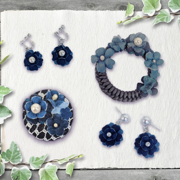JAPAN BLUE・藍で染めたマテリアルを造花にしたパーツでハンドメイド体験