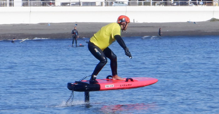 通常のフォイルボードにモーターとバッテリーが取り付けられており、電動で走行することができます。Eフォイルは、風や波の影響を受けずに自由に移動できるため、穏やかな湖や海でも楽しむことができろのが特徴です。日本では体験できる場所が限られるまだまだ新しいマリンスポーツですが、「ちょっとヨット」では湘南・江ノ島の海でE-FOILを体験することができます。