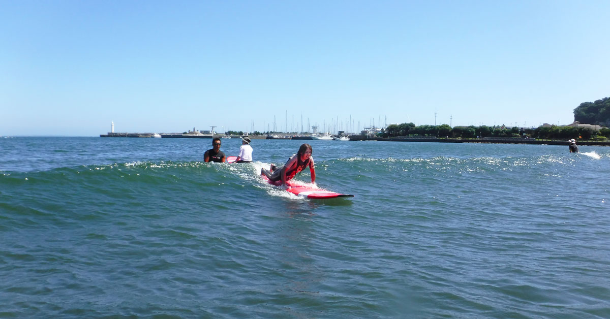 人気の観光地である湘南・江ノ島は、サーフィンスポットとしても有名です。江ノ島周辺には波の良いビーチが点在し、サーファーにとっては魅力的なエリアです。元日本チャンピオンのプロインストラクターが極少人数制で丁寧に教えるので、サーフィンが初めての方も、趣味でサーフィンを楽しんでいる上級者の方にもご満足いただけるスクール内容となっております。