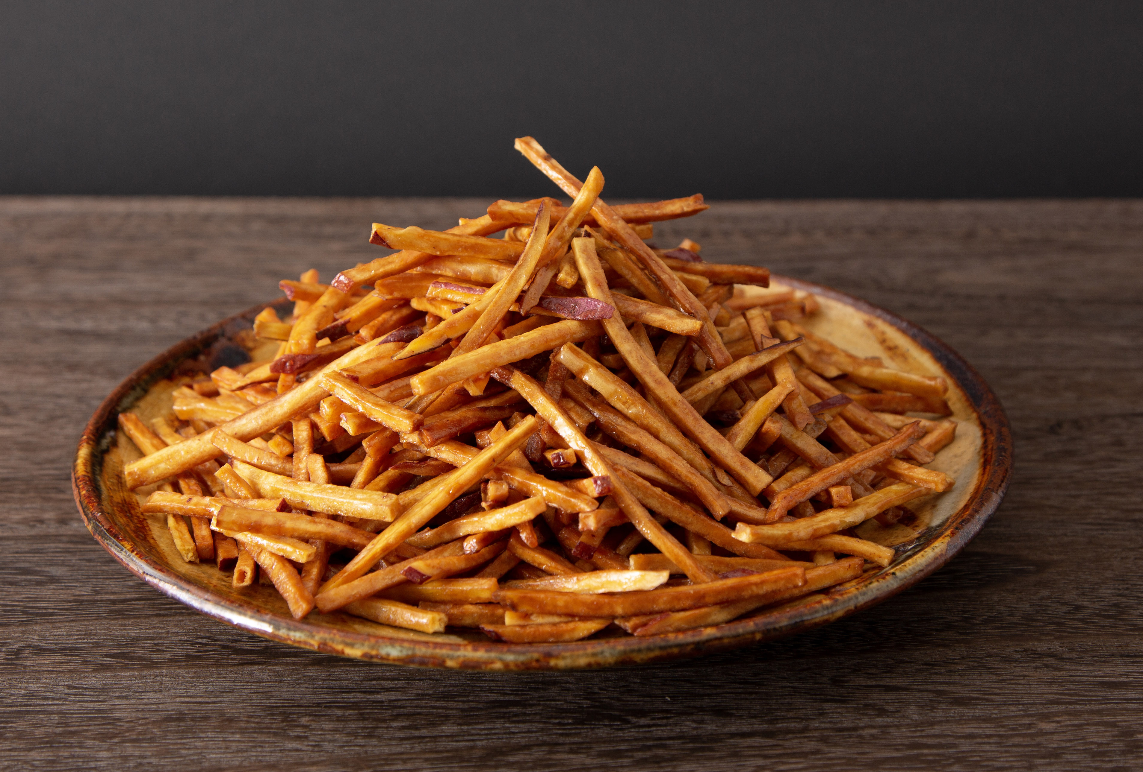 厳選したブランドさつまいもをカットして、良質の菜種油でサラッと揚げました。さつまいもの風味と香ばしさ、上品な甘さが楽しめる、まさに自然が生み出した美味しいおやつです。さつまいもを細くカットしており、カリッとした歯応えが堪りません。素材本来の自然な甘みと香りを引き出した素揚げタイプ、黒糖の自家製蜜を使用した蜜がけタイプなど各種バリエーションをご用意しております。