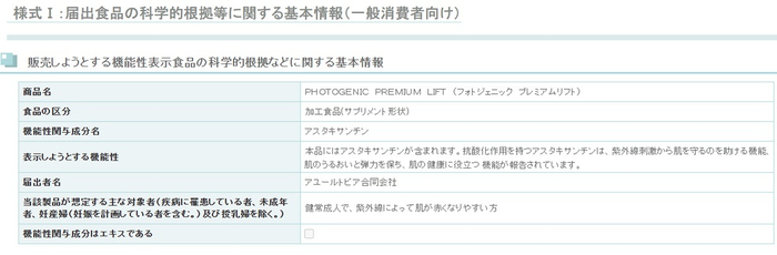 届出表示 :本品にはアスタキサンチンが含まれます。