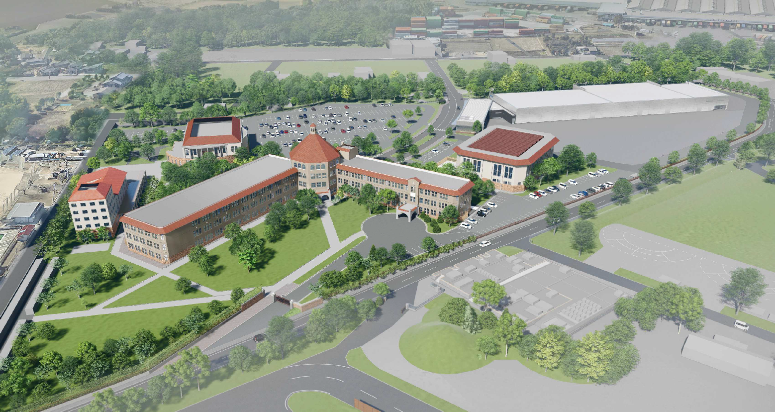 I-PEXキャンパス正門から望む「金型棟」(左)・「本館」(右奥)のイメージ