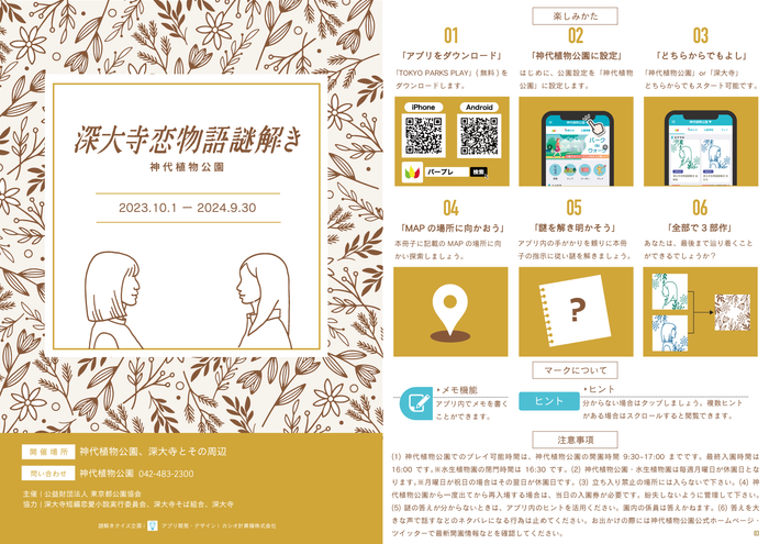 「深大寺短編恋愛小説 深大寺恋物語」とのタイアップによる恋愛小説をテーマに謎を解き進めていく、周遊型コンテンツ第5弾「深大寺恋物語謎解き2023」を配信します。