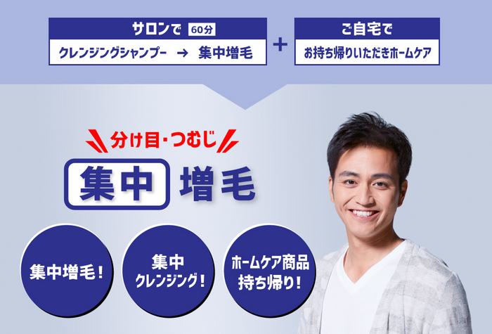 ※クレンジングシャンプーと増毛で1時間のコースとなります。