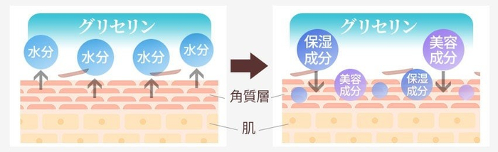 ノイルの主成分は、肌を柔らかくし、吸湿性も高いとされる美容成分・グリセリン。しかし、その性質ゆえ、高濃度を単体でつけると肌本来の水分まで吸い上げ、逆に乾燥を引き起こしてしまいます。そこで、ノイルは高濃度のグリセリンに加え、ヒアルロン酸やセラミドなどの保湿成分をたっぷり配合。まるで美容液のような内容成分が水分を補給し、潤いのある肌作りをサポートします。