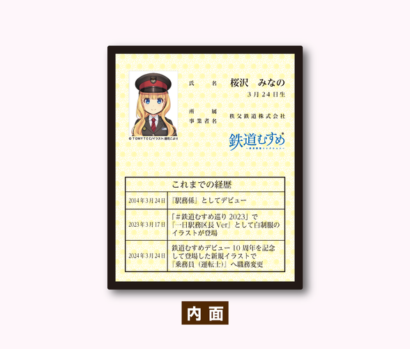 「桜沢みなの」の乗務員合格を記念し、秩父鉄道初の乗務員免許証型(二つ折り)の仕様となっています。