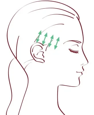 頬に包み手を置き、頬杖をつくような状態で行います。安定しない場合は、机などに肘を置いてください。
