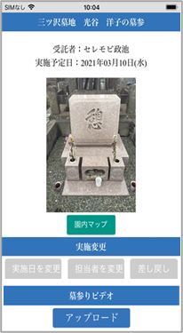故人のプロフィールとともにお墓の位置情報と写真を、子孫や縁者・友人に遺し伝えることができる無料のアプリです。また、提携している墓地にあるお墓であれは、上空写真上に代理参拝(代参)を全国一律3,300円で依頼することができます。入院・療養中の方は元より、遠方に暮らす子供や孫の他、故人の旧友や同僚など、故人と縁のある多くの方が利用することを想定しています。