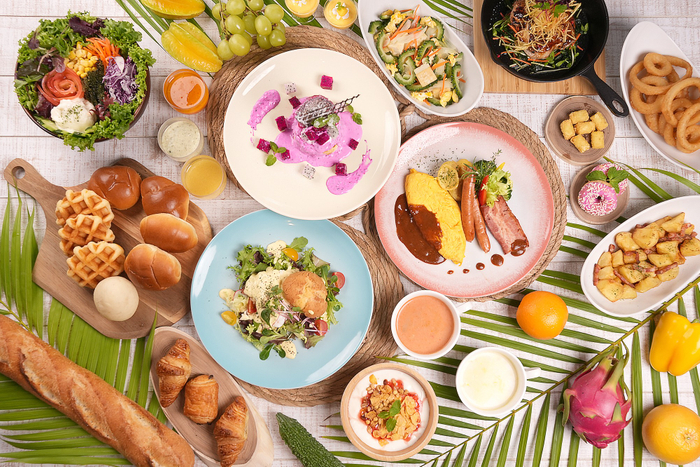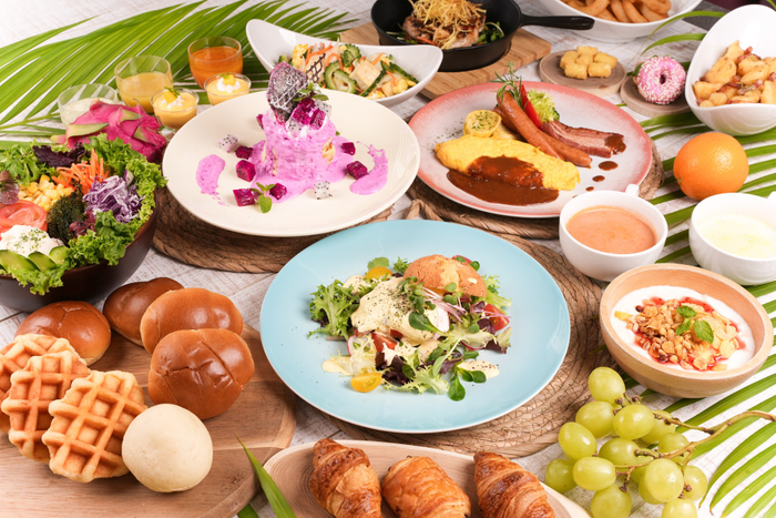 新しい朝食メニューはハーフビュッフェとなっており、メインディッシュはアメリカの定番朝食に沖縄の豊かな食文化を取り入れた4種のメニューからお選びいただけます。