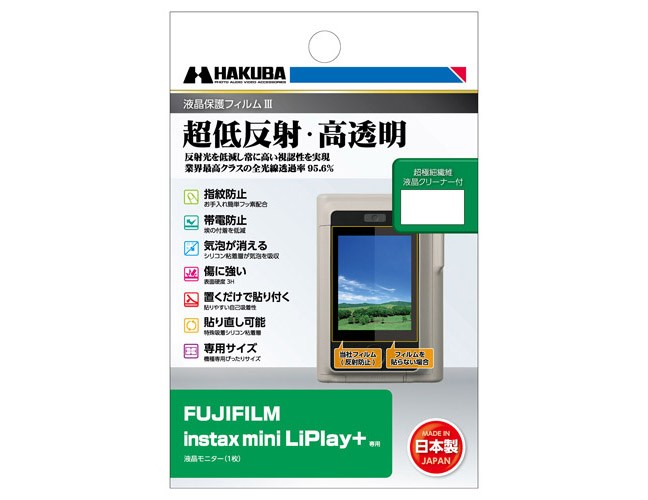 ハクバ写真産業株式会社(本社:東京都墨田区)は、業界最高クラスの超低反射・高透明さを誇るデジタルカメラ用液晶保護フィルムにFUJIFILM「instax mini LiPlay+」専用1製品を追加いたします。