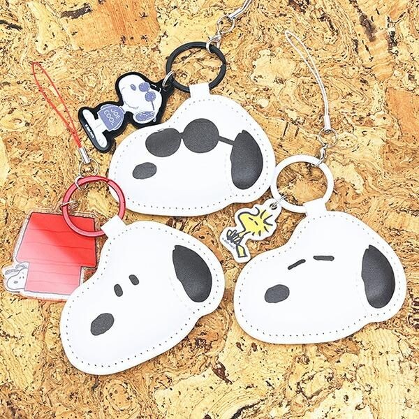 3種類ともレザー調の質感がポイントで、キャラクターものでも大人っぽく持てるのが魅力のアイテムです。スマホにも手持ちのアイテムにも、ぷっくりとしたスヌーピーの可愛さをさりげなくプラスしてみてくださいね。