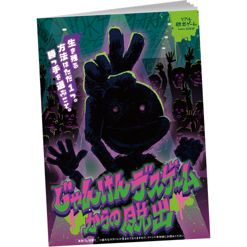仕掛けられた謎を解き明かし、危機的状況から脱出を目指す「リアル脱出ゲーム」と、理不尽な死から逃れるために参加者が命を懸けた危険なゲームに挑む「デスゲーム」。そこに誰もが知っている「じゃんけん」の要素を融合した新作リアル脱出ゲームが、『じゃんけんデスゲームからの脱出』です。