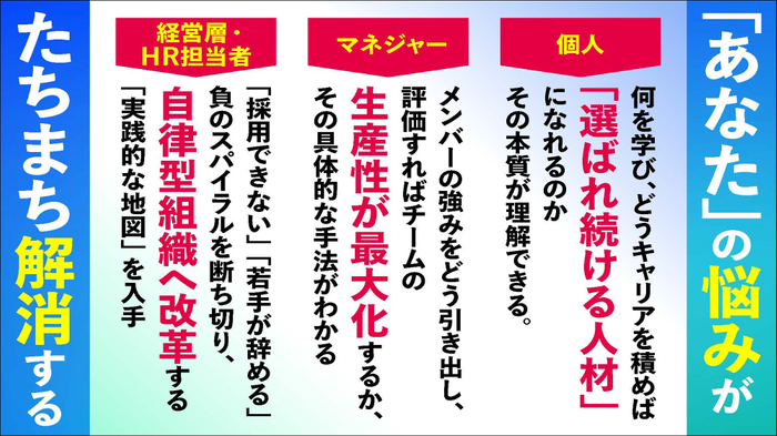 ●経営層・HR担当者: 「採用できない」「若手が辞める」という負のスパイラルを断ち切り、自律型組織へ変革するための「実践的な地図」が手に入ります。