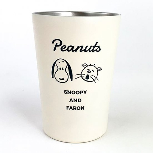 ホワイトカラーのタンブラーには、仲良しのスヌーピーとファーロンがデザインされています。眠そうなファーロンの表情が笑えます♪