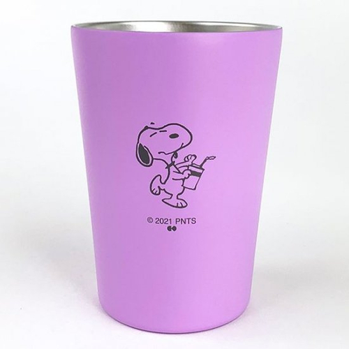 きれいなパープルカラーのタンブラーもご紹介♪ゴキゲンな顔でドリンクを飲むスヌーピーがキュートです。