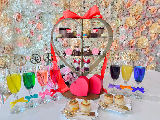 このアフタヌーンティーでは、くまとうさぎの愛らしい飾りや、バレンタインに欠かせないチョコレートを使ったたくさんのお菓子をご用意。