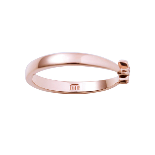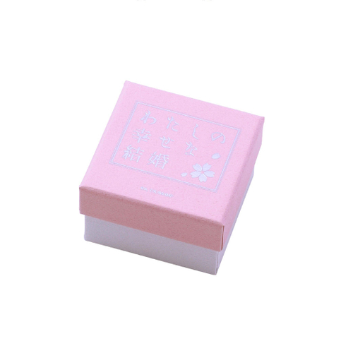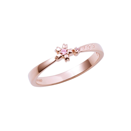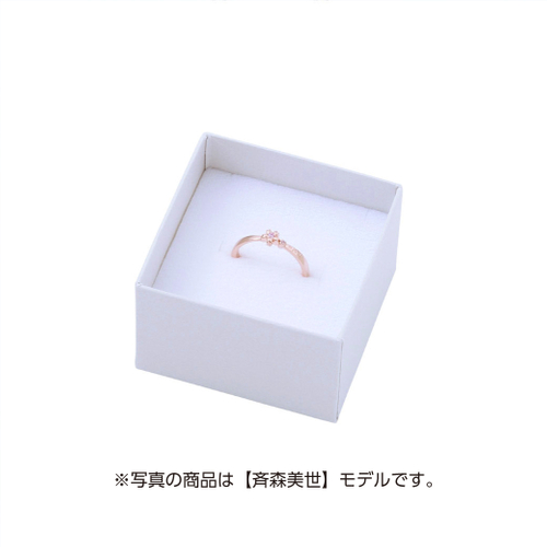 ゆるやかなウェーブ型リングの表面には作品の世界観から桜のモチーフを取り込み、桜色のストーンをセット。内側にはつげの櫛の刻印を施しました。