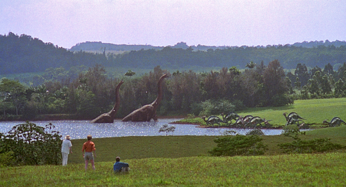 はるか昔に絶滅した恐竜たちが現代によみがえったらどうなるだろうか? 破天荒なアイデアを遺伝子工学に基づいて描き、ベストセラーとなったM・クライトンの原作を、S・スピルバーグが特殊技術の 粋を尽くして映像化した驚嘆の恐竜ワールド。古代の琥珀の中の蚊から恐竜のDNAを抽出し、バイオテクノロジーによる恐竜の再生が成功した。コスタリカ近くの小島に建設中の“ジュラシック・パーク”は、よみがえった恐竜が歩き回る史上最大のテーマパークになるはずだった。モニターとして3人の学者と二人の子供が園内をめぐるが、コンピュータのトラブルから制御されていたはずの恐竜たちが暴れ出し、肉食恐竜は人間に襲いかかった……。画面の中を縦横に駆けめぐる恐竜の躍動感、現実感には映画が ここまでできるのかという感動を与える。(ぴあ映画生活より)