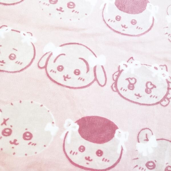 ちいかわのブランケットは淡いピンク!ご機嫌そうなちいかわの表情がたまりません。