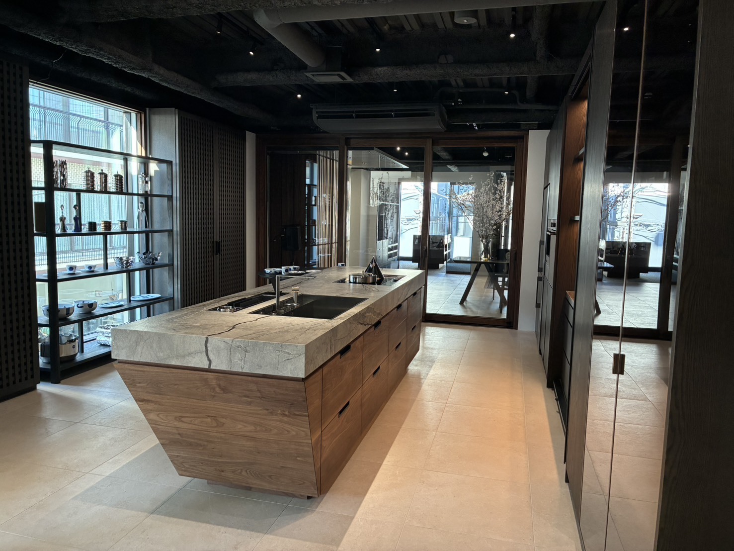 南青山には、世界の高級家具やインテリアブランドが立ち並びます。しかし、キッチンや建具、木製サッシといった造作家具・建具のショールームは、これまでこのエリアに存在しませんでした。