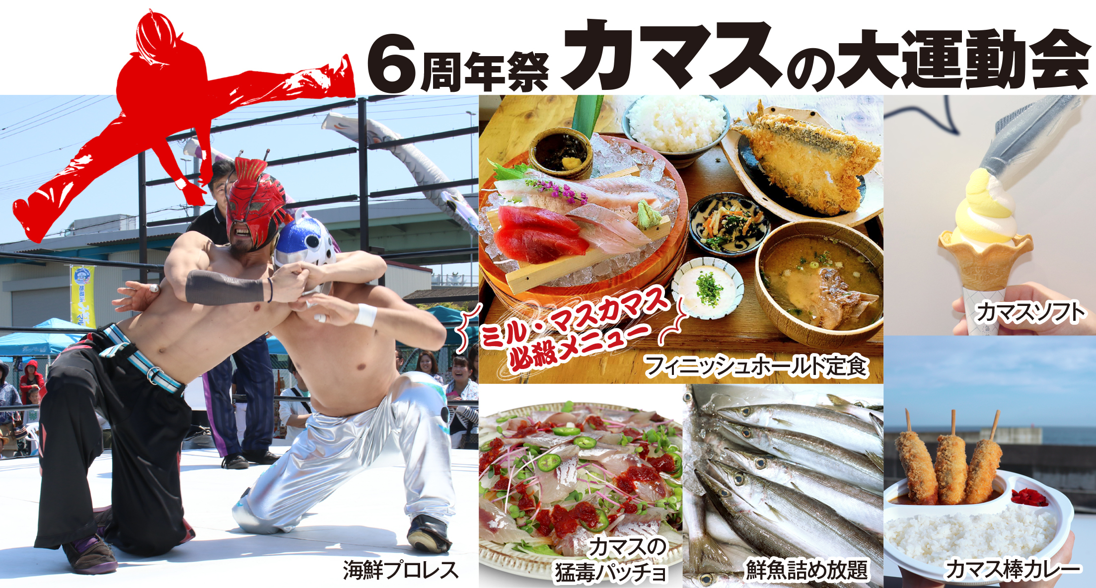 神奈川県・小田原市の魅力を発信する魚のテーマパーク「漁港の駅TOTOCO小田原」(所在地:神奈川県小田原市、運営:株式会社相州村の駅)は、2025年11月22日(土)で、6周年を迎えます。そこで、2025年11月22日(土)~30日(日)の9日間で、“6周年祭-カマスの大運動会-”を開催いたします。本イベントは、小田原市を代表する魚の一つ「カマス」を使用した企画を、多数ご用意いたしました。小田原市で初開催となる『海鮮プロレス』や『鮮魚詰め放題』、『特大カマスの開きの特売』などカマスにまつわるイベントから、海鮮プロレス初開催を記念して小田原漁港とと丸食堂では『新レスラー誕生記念、必殺技メニューの発売』やおさしみ天国・小田原海鮮ゴーゴーでは『カマス焼き、カマスの猛毒パッチョの食べ放題』、小田原漁港プリンでは『カマスソフトの発売』、小田原漁港カレーでは『小田原産カマス棒カレーの発売』など、まさにカマスだらけの9日間となります。そして、漁港の駅TOTOCO小田原は、2019年11月のグランドオープン以来、総来場者数750万人を突破いたしました。日頃のご愛顧に感謝を込め、漁港の駅TOTOCO小田原が総力をあげた“6周年祭-カマスの大運動会-”をお楽しみください。