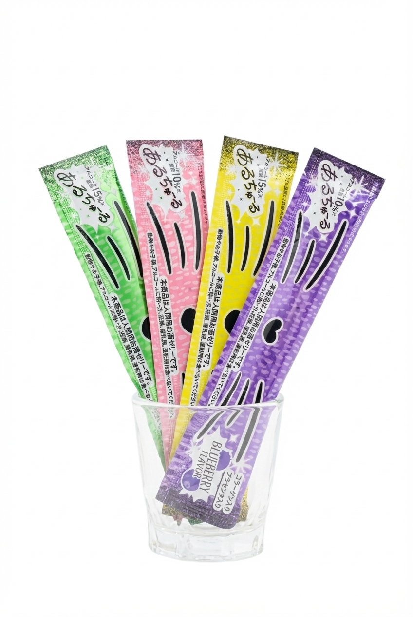 「あるちゅーる」は、手軽に楽しめるだけでなく、お客様同士、お客様とキャストのコミュニケーションツールとしても活用できる、日本初のスティック型アルコールゼリーです。