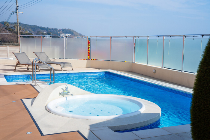 プール?と思われるかもしれませんが、THE BOXY AWAJIのプライベートプールはヒートポンプで温めながら循環しています。