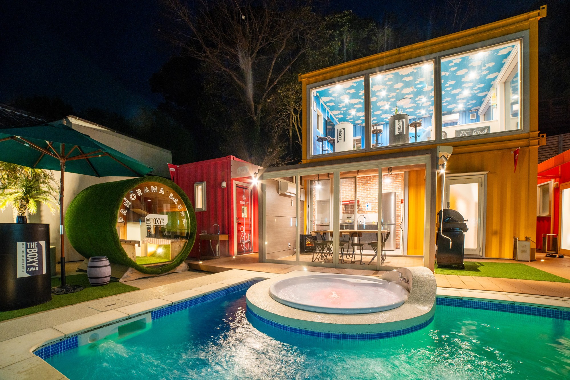 兵庫県淡路島のコンテナヴィラ「THE BOXY AWAJI」が、ナイトプール×BBQ×5つの特典を詰め込んだ期間限定プランを4月25日宿泊分よりスタート。