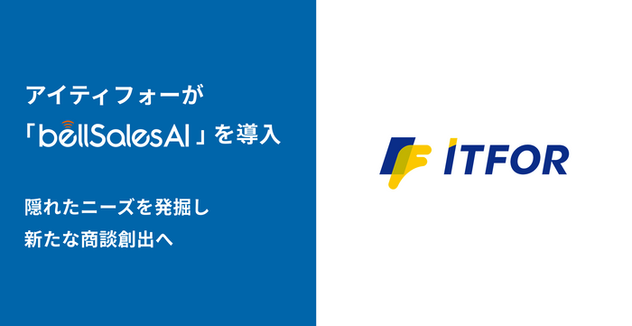 Salesforce自動入力アプリ「bellSalesAI(ベルセールスエーアイ)」の開発・販売を行うベルフェイス株式会社(本社:東京都港区、代表取締役:中島 一明、以下 ベルフェイス)は、金融機関を中心にITサービスを提供するアイティフォー(本社:東京都千代田区、代表取締役社長:佐藤 恒徳、以下 アイティフォー社)が「bellSalesAI」を導入し、新たな商談を創出したことを発表します。