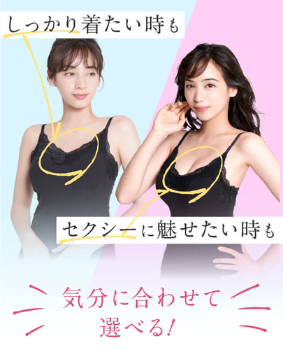 キャミソールの内側に360°のパワーネットを内蔵しているため、外から見ると可愛いキャミソールでも、しっかり着圧できる構造になっています。