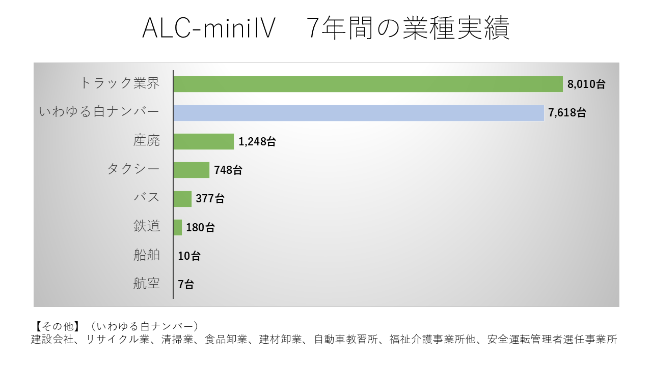 2017年9月に発売された本機器は発売から7年が経過しました。2022年末から2023年にかけて半導体不足により一時期出荷が滞りましたが、2023年12月1日の安全運転管理者選任事業所におけるアルコール検知器使用義務化(いわゆる白ナンバー飲酒検査義務化)施行を経て、発売から7年目は過去最高5000台/年を超え、総出荷は約1万8千台となりました。