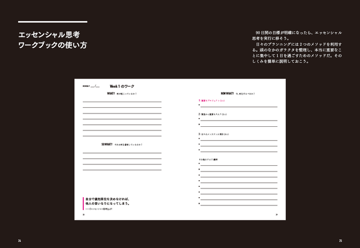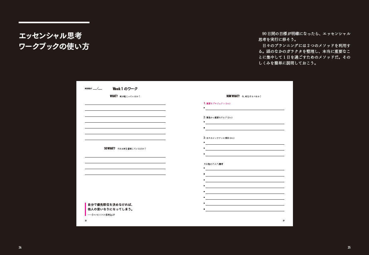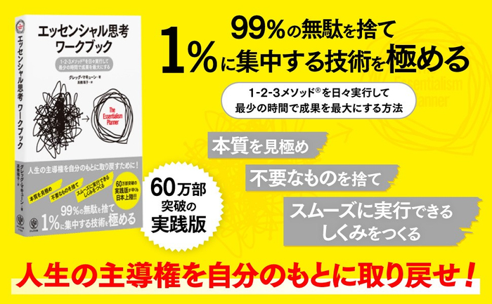 本書は、この『エッセンシャル思考』を実際の生活に落とし込み、実践するための一冊です。