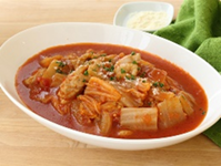 鶏肉と白菜を「カゴメ基本のトマトソース」で煮込んだスープです。