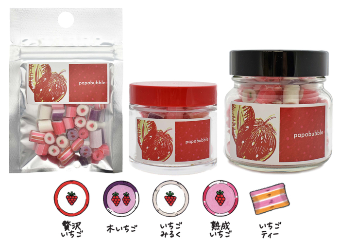 「世界⼀おもしろいお菓⼦屋さん」アート・キャンディ・ショップ「PAPABUBBLE/パパブブレ」は、2021年1⽉15⽇(⾦)より、いちごアイテムを発売中です。