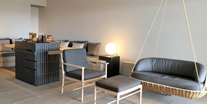 刻々と表情を変える空と海の傍らでソファーに横たわりながらのんびりとアナガタイムをお愉しみいただけます。リビングには茶筒や鉄瓶、湯呑みなど日本各地の作家のものを集めた、もてなしのダイニングテーブルを設えています。