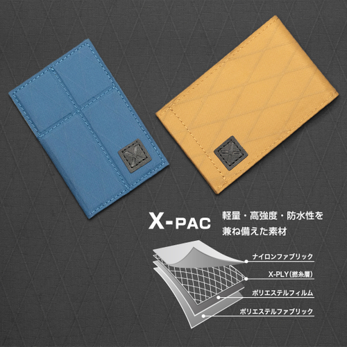 超軽量で耐久性に優れた米国製高機能素材X-PACを採用し、 傷や汚れ、水にも強いため、長くお使いいただけます。