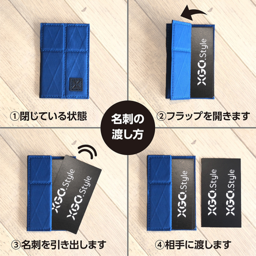 名刺交換の「シーン」では、フラップ構造により「サッと取り出して」「スッと渡せる」スマートな所作が初対面の相手に好印象を与えることが出来ます。