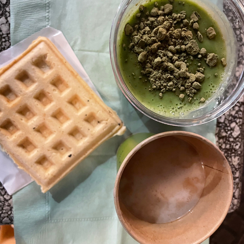 - グルテンフリーワッフル:予想以上のサイズで、新食感を提供。卵や白砂糖を使用せず佐藤をてんさい糖を使用。