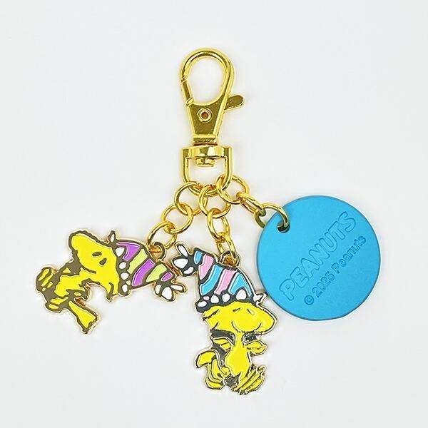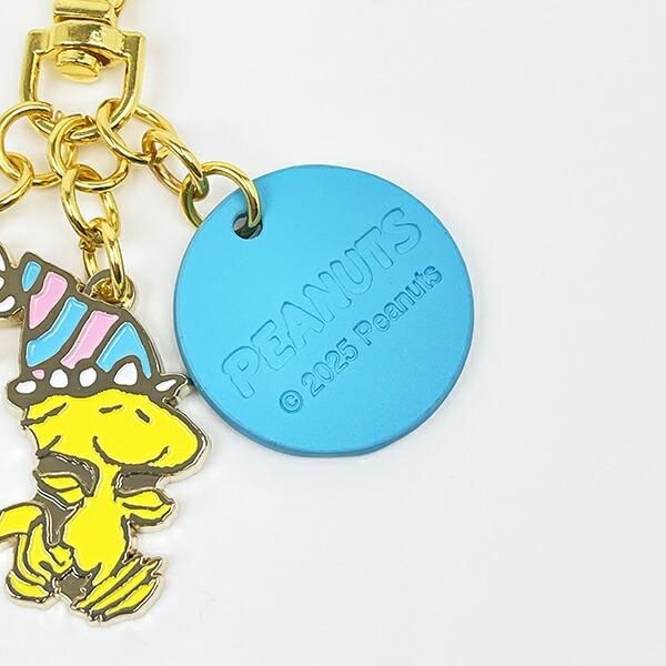まずはこちら、 **スヌーピー ウッドストック 3連キーチャーム** です。 **カフェスタンド** デザインは、仲良しコンビがちょっぴりおしゃれなフェスタイルとなった姿がとってもキュート。
