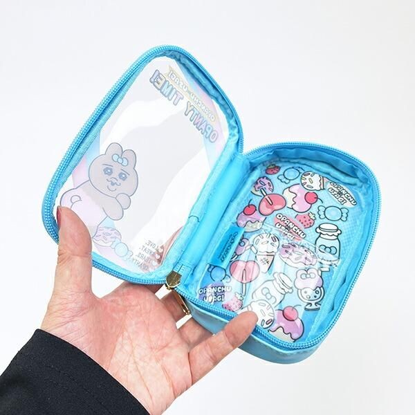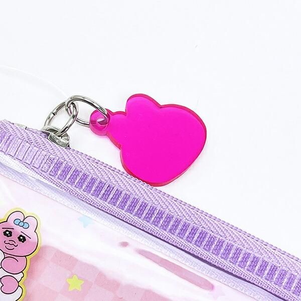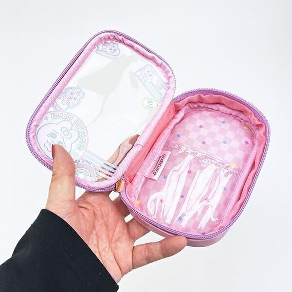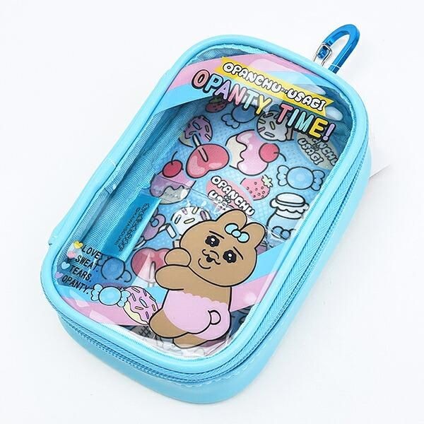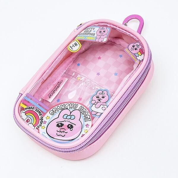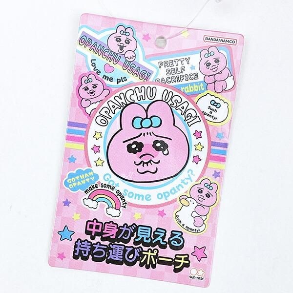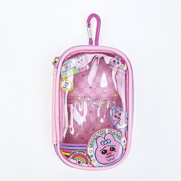 このポーチは、中身が見えるタイプのポーチなので、推しのぬいぐるみを入れたり缶バッジやアクスタをいれてかわいくアレンジができます。なかにものを入れると、おぱんちゅうさぎのフレームがかかったみたいにみえて一気にチャーミングになりそうです。