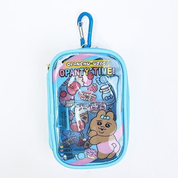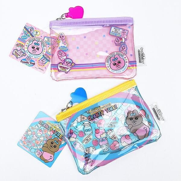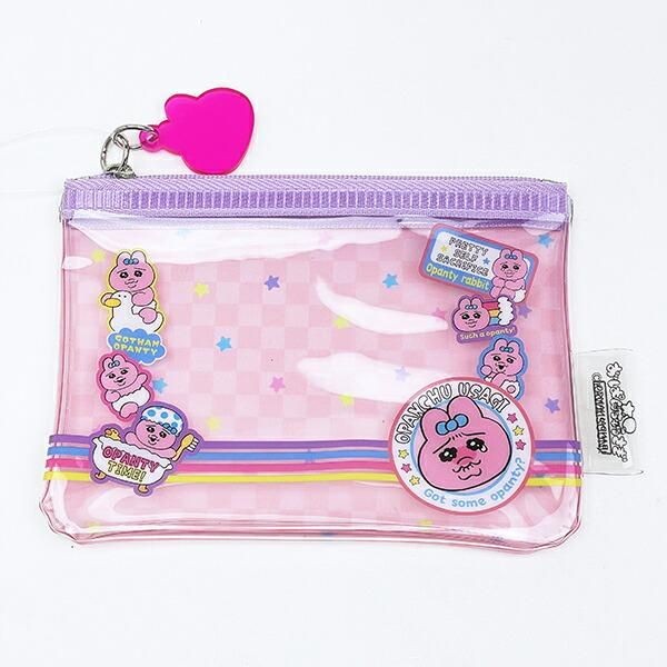 ちょっとしたコスメやお薬を入れたりできるサイズ感のミニポーチです。クリアな素材になっているので、ポーチを開けずに中身を確認ができて便利です。おぱんちゅうさぎのらしいぽポップでラブリーな世界観がたまりません。そして、チャームまでおぱんちゅうさぎの形できゅんとしてしまいます。サイズ:9.5cm×13cm×0.6cm 素材:PVC