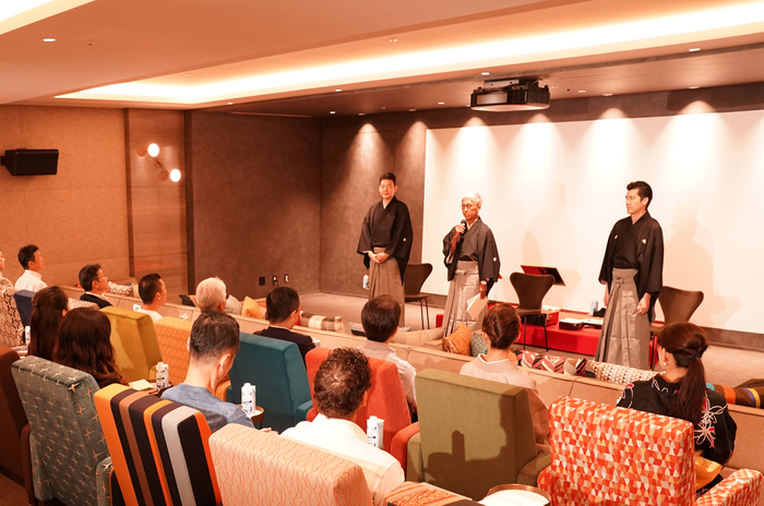 歌舞伎の世界でご活躍されている清元の浄瑠璃方 七代目 清元延寿太夫様、三味線方 初代 清元斎寿様、清元國惠太夫様にご登壇いただき、歌舞伎浄瑠璃や清元節についてのお話、実演、参加者のお稽古体験などを通じて、浄瑠璃を身近に感じ、学ぶことができる体験型イベントを開催いたしました。