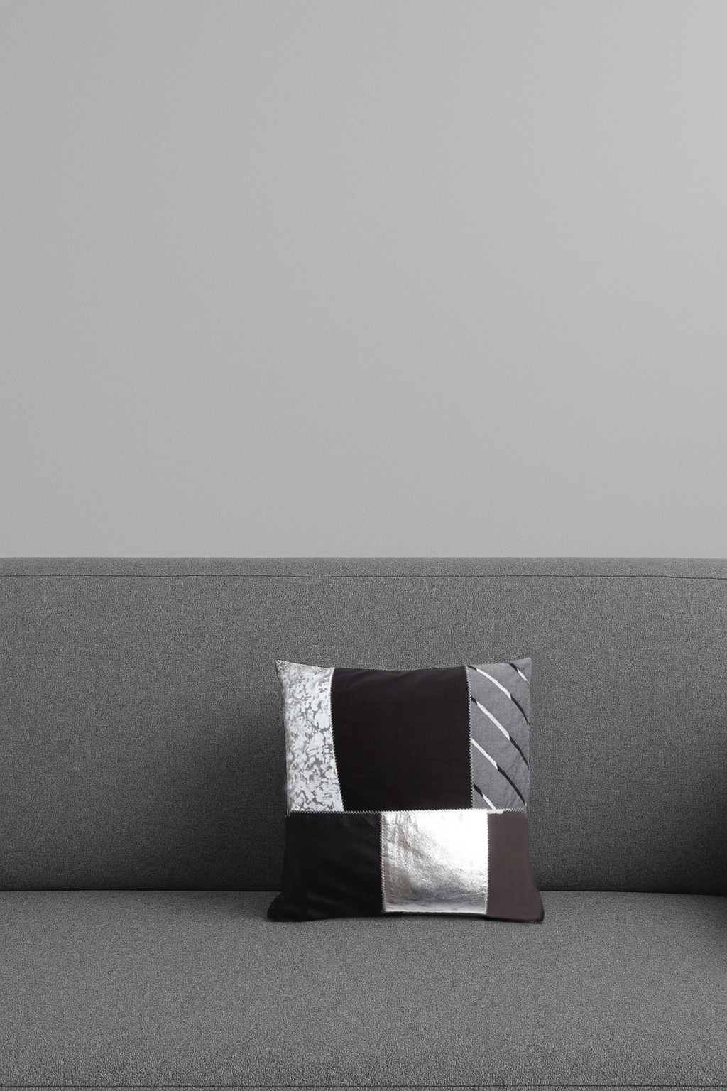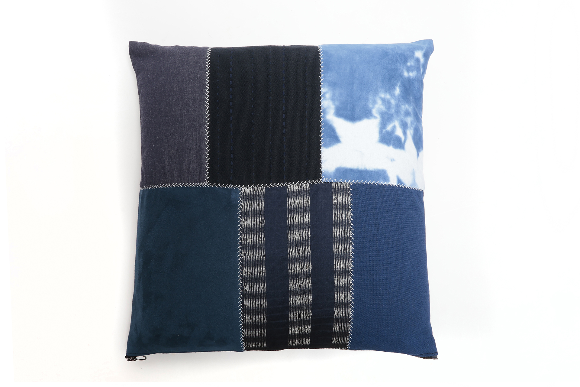 素材:日本の愛する生地を大切に最後まで使うミハイルギニスアオヤマは、縫製後の素材を丁寧に仕分け、アートの力で付加価値を加えた1点モノのクッションカバーを作りました。クッションカバーとしてだけでなくキモノ袖パーツにもなる遊び心は機能性だけでなく日常に楽しさも生み出す、環境にやさしいアイテムといえます。