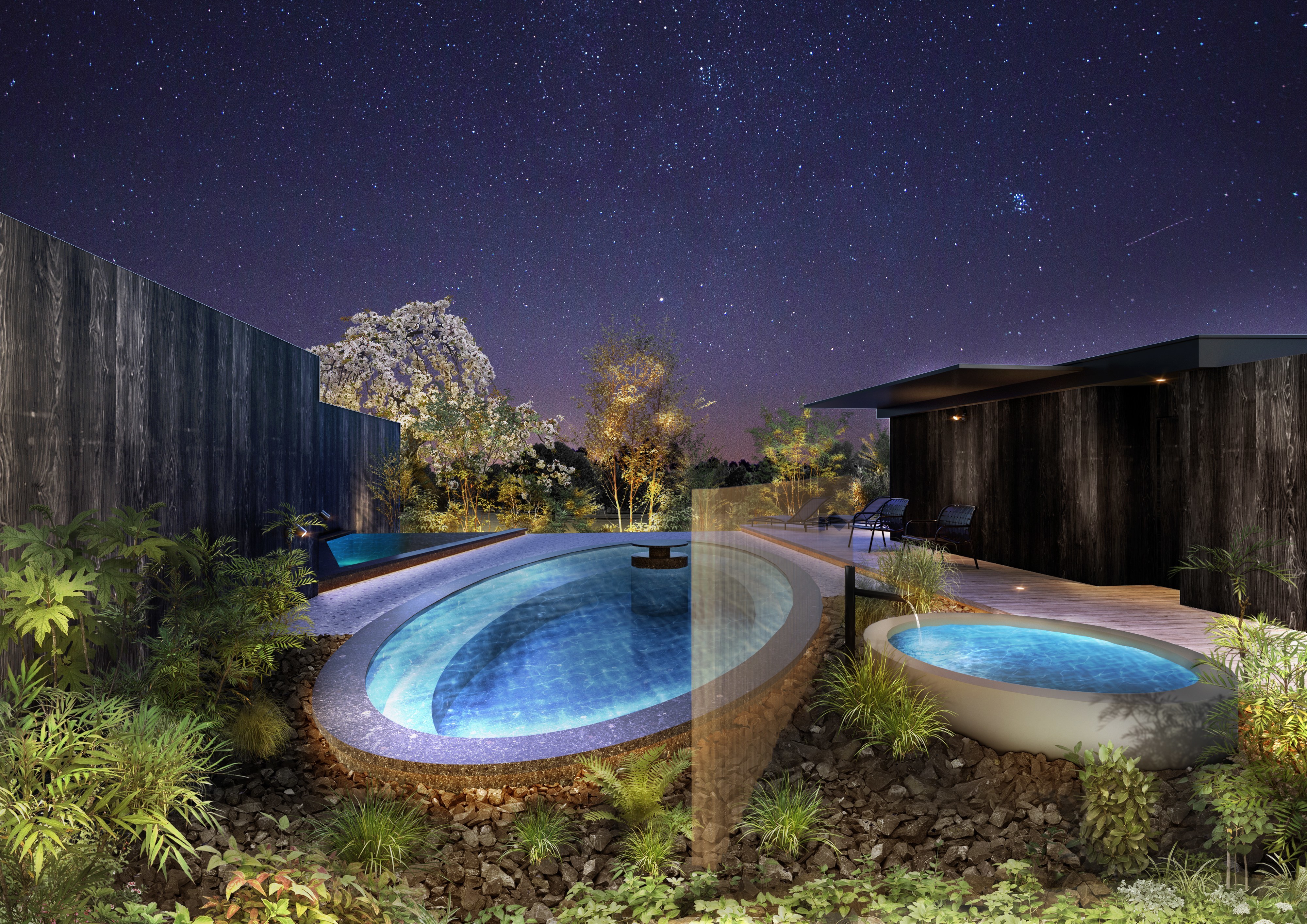 いすみ市の満天の星をお楽しみいただけるために、星空デッキ、星空水盤デッキ、満天星空ツアーを開催しております。