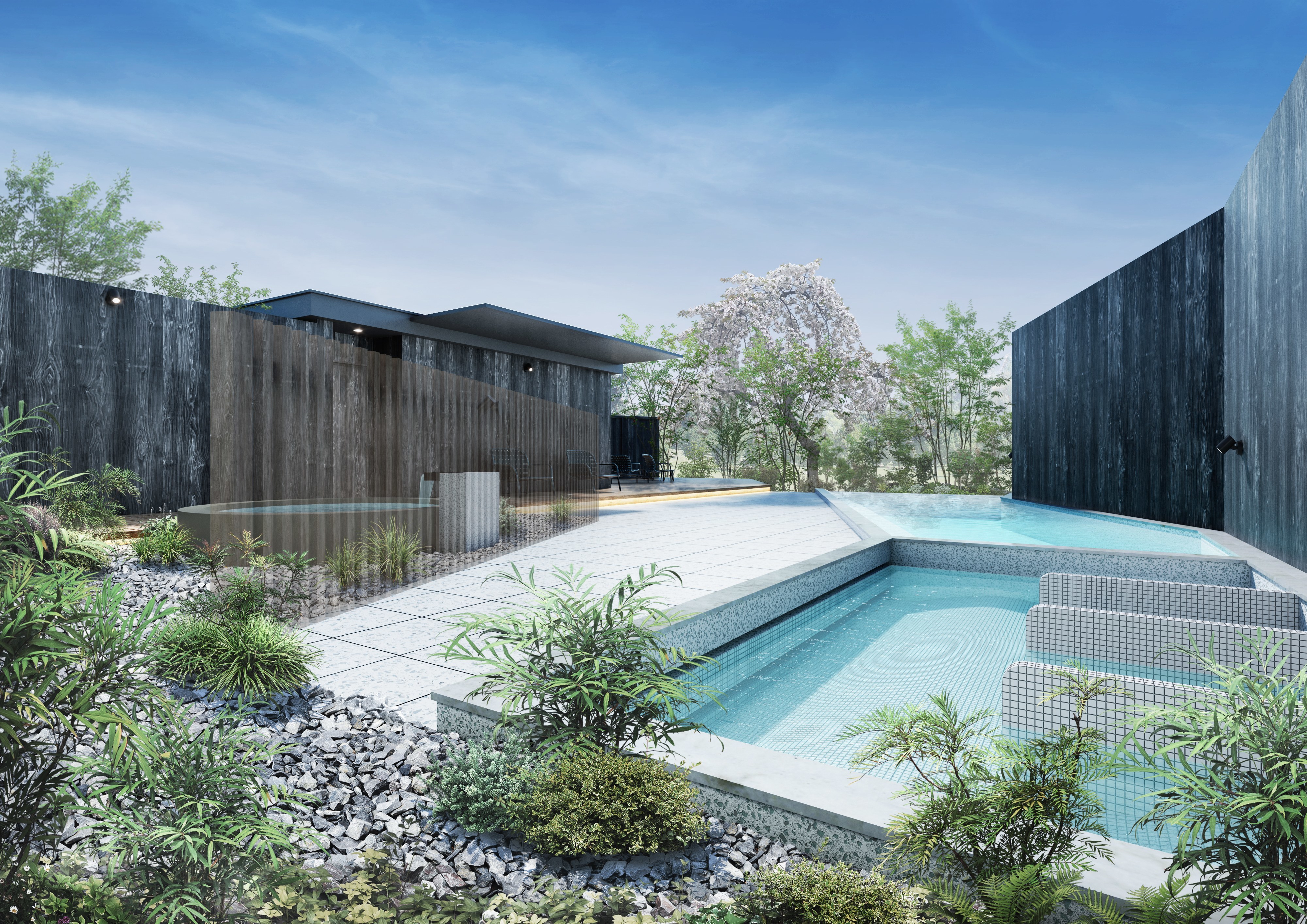 星空を満喫できる大浴場、露天風呂、フィンランドサウナエリア。