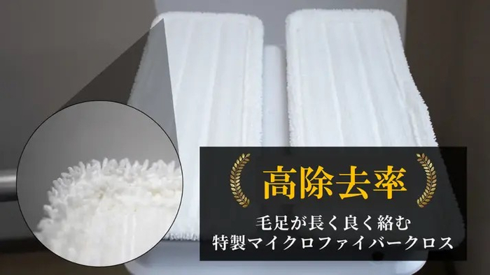 livease EM-013Wのモップパッドには通常より毛足が長いマイクロファイバークロスを用いています。長い毛足により見た目に比べモップパッドの表面積が増え、さらにホコリや汚れ、雑菌まで徹底的に絡み取ります。