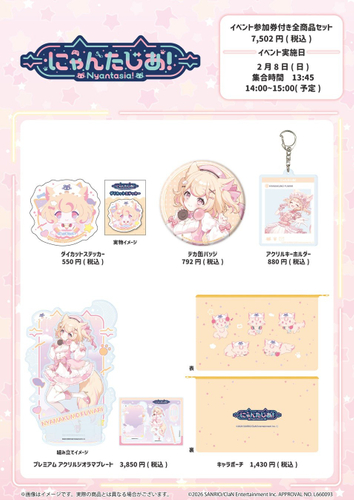 **2026年1月23日18:00〜2026年2月8日15:00までの先行受注期間中に通販サイト「サンリオアニメストアONLINE」でイベント参加券付き全商品セットをご購入いただいた方には、2026年2月8日(日)14:00〜15:00に「サンリオアニメストア 池袋P'PARCO店」で開催予定の特別イベントへご参加いただけます。**